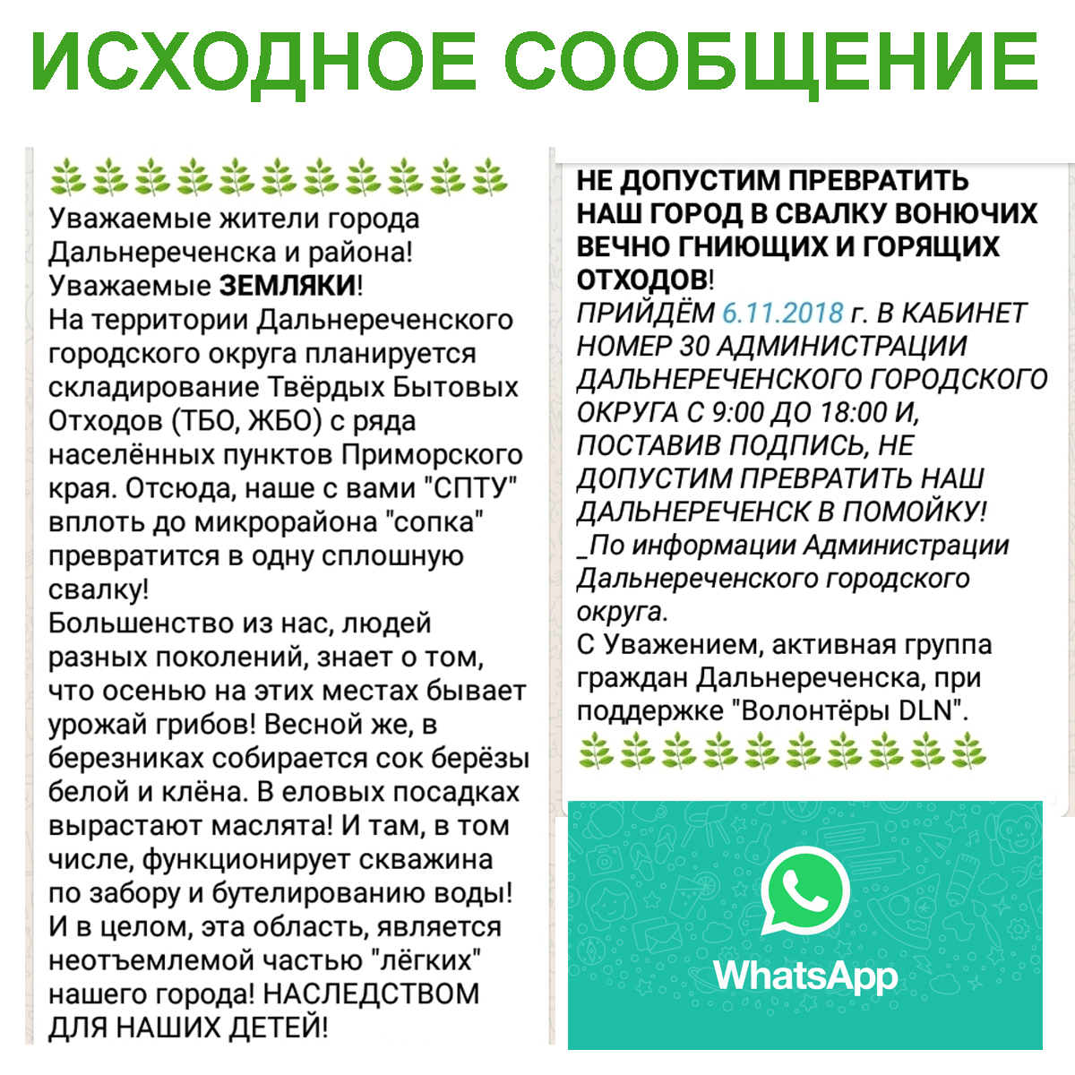 Жители г. Дальнереченска и Дальнереченского района пересылают друг другу по WhatsApp сообщение с таким содержанием: