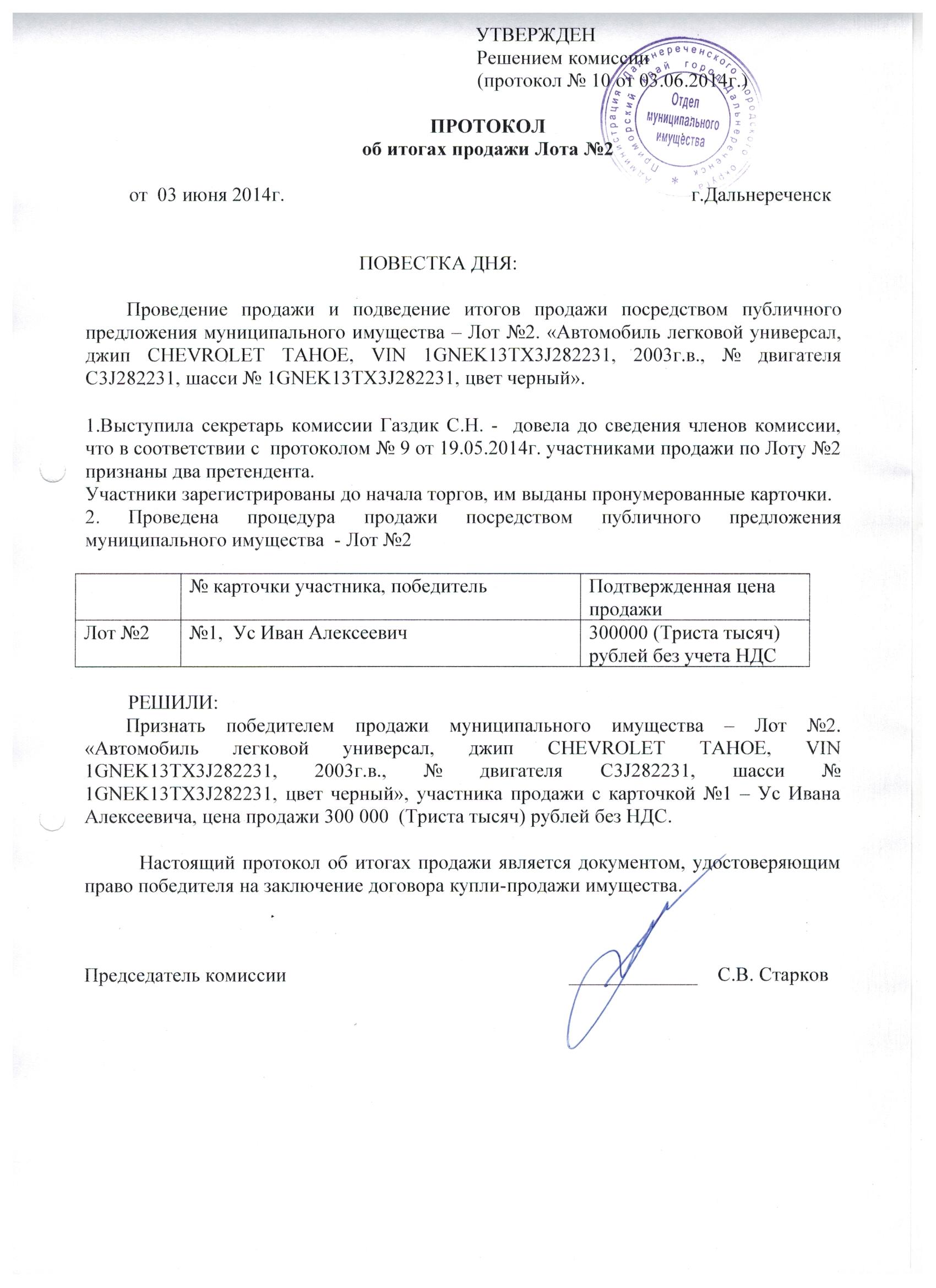 Администрация Дальнереченского городского округа информирует об итогах продажи посредством публичного предложения муниципального имущества (MERCEDES BENZ S500L, CHEVROLET TAHOE)