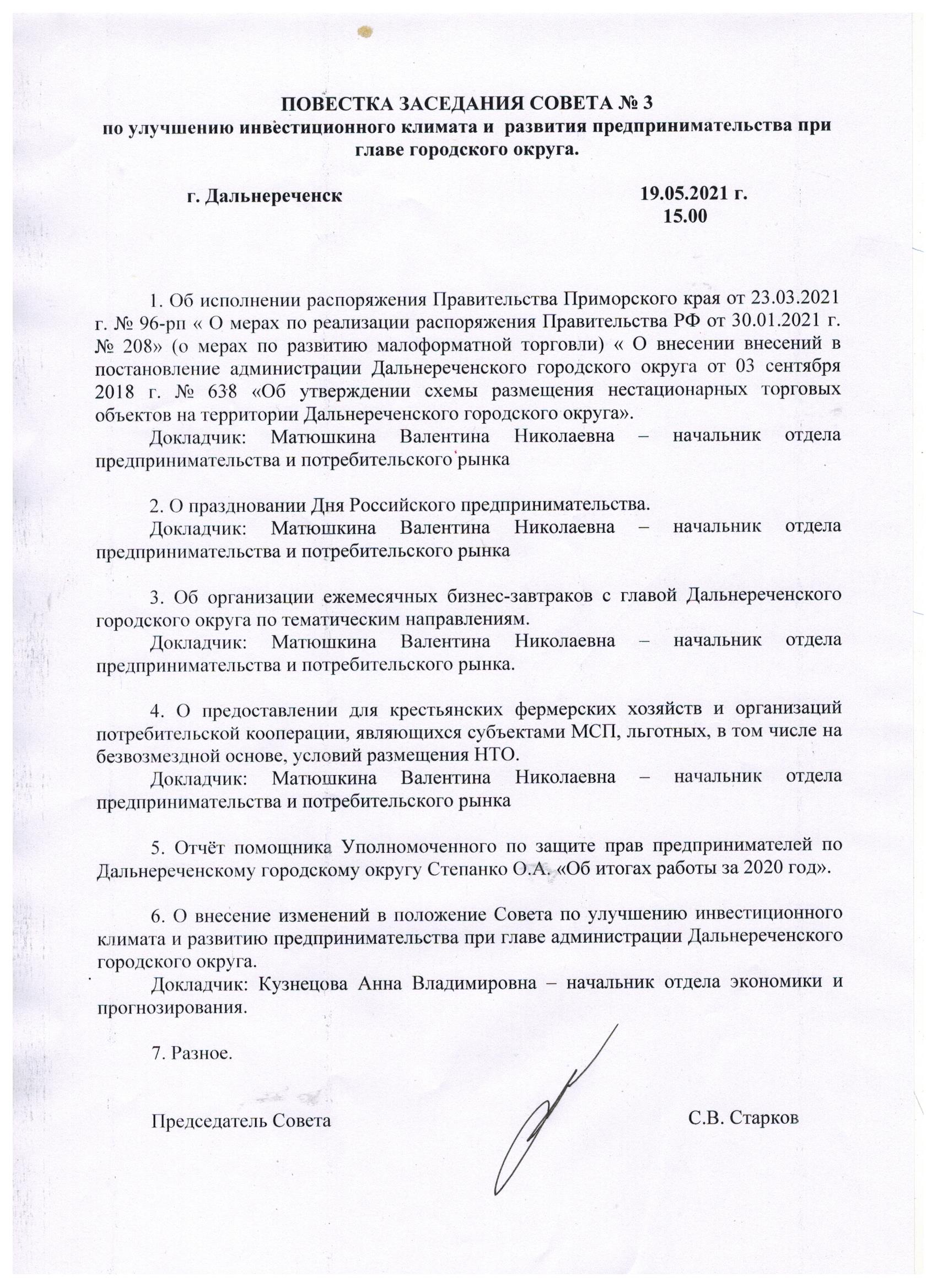 График заседаний Совета, повестки